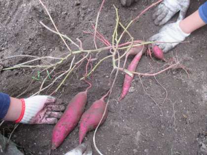 イモを傷つけないように慎重に土をかき分けて掘り進めると・・・