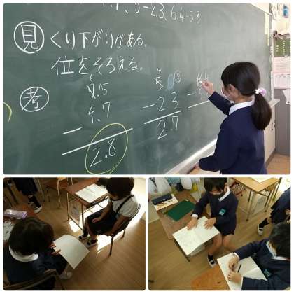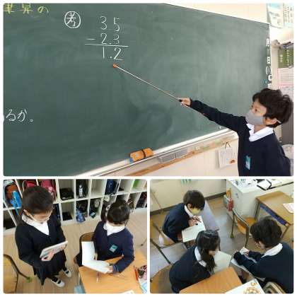 今日は小数のひき算の筆算の仕方について、を学習しています。