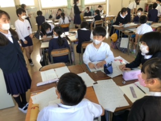 友達をみて話せるようになりましたね!どの班も、聞き手は一生懸命話を聞き、友達の話し方の評価をしていました。