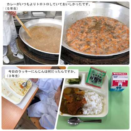 カレーライスのラッキーにんじんは、くま、犬などに加えて、いちょうもありました。カレーの中も秋が来たようです!