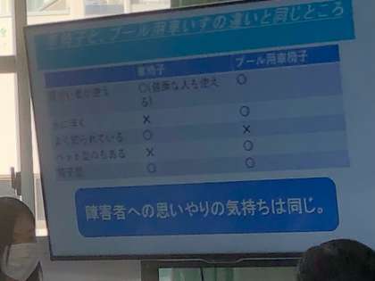 事前に車いすについて調べ、班で作成したパワーポイントの発表も終えました。