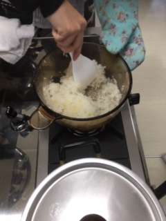 みそ汁は、にぼしからだしをとり、うまみたっぷりのものができあがりました。ごはんも水の量や火加減に気をつけて鍋で炊き上げました。普段あまり食べることのないおこげのおいしさにみんなおどろいていました。冬休みに、是非家庭でも挑戦してほしいと思います。