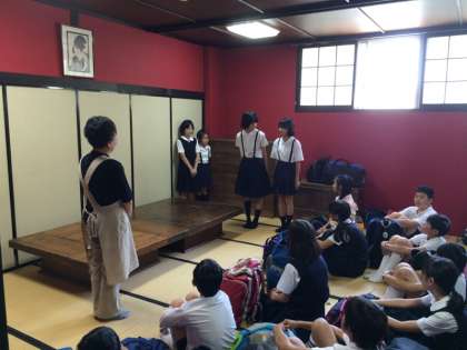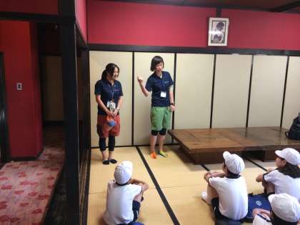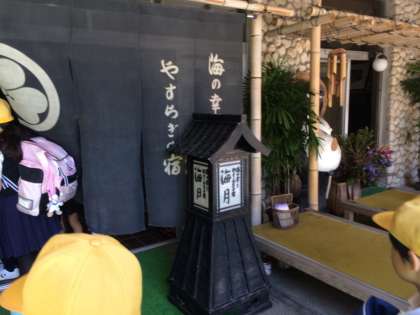 旅館海月について、すぐに開舎式を行いました。大女将や海島遊民クラブのスタッフのみなさんよりあいさつをしていただきました。この2日間で、自然にふれあいながら、たくさんの体験をし、食べ物をいただくということはどういうことなのか、その点を深く考えてみたいと思っています。