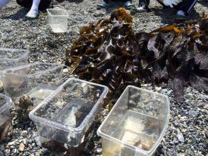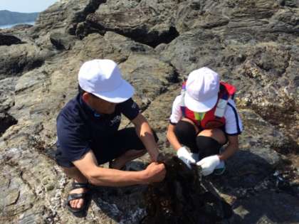 短い時間でしたが、磯に生きる生物をたくさん見つけました。バフンうに、ヤドカリ、ヒトデなど。