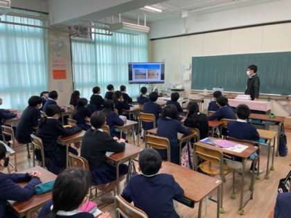 今日、北稜中学校の生徒会のみなさんが、6年生にteamsを活用して学校紹介をしてくれました。