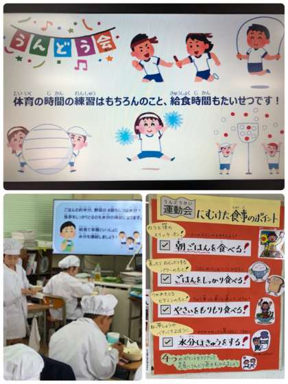 運動会まで2週間を切りました。運動会で活躍するためには、体育の時間の練習はもちろんのこと、給食を含めた食事も大切です。