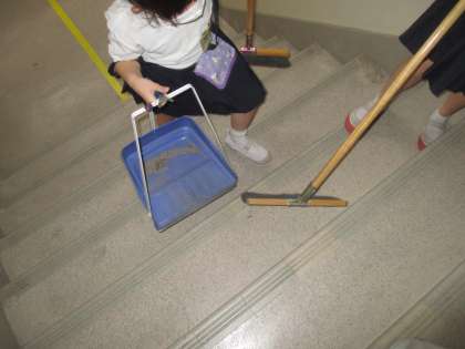 そうじの時間も友達と協力して学校をきれいにしています。「ちりとりとってくるわ」「ありがとう」「次のごみ集めとくな」「たのんだ」慣れてくると次にすることがわかり、声を掛け合って、そうじすることができています。