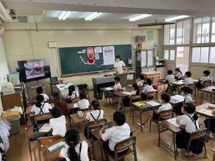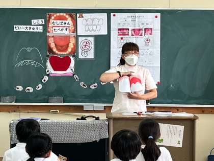 二年生は、今日歯科指導をしていただきました。永久歯や乳歯について知り、正しい歯の磨き方を学習しました。