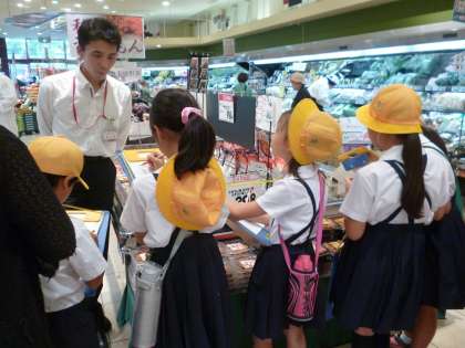 地元のスーパー「「コーヨー」の人気のひみつを見つけよう」そんなテーマで、本日3年生が社会見学へ行きました。学育サポーターとして保護者の方が9名付き添っていただきました。コーヨーでは、3班に分かれ、店内の1階2階裏側を見学しました。子どもたちはお店の方に、たくさんの質問をしていました。「一番売れている品物は何ですか?」「働いている人は何人ですか?」「女の人は何人いますか」「1階と2階のおいてある品物の違いはなんですか?」など、質問していました。スーパーの見学を通して、商品の並べ方の秘密や品ぞろえの秘密、仕入れの秘密、安心・新鮮の秘密、宣伝の仕方の秘密、建物の秘密などについて、これから調べていきます。ていねいに対応していただいたコーヨーの店長、ひろたさん、つきださんをはじめ店員の方々、学育サポーターとして子どもたちを見守っていただいた保護者の皆様、本当にありがとうございました。