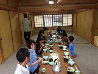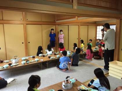 今日の午前中は、竹細工、そしてビニールプールでの魚つかみが予定されています。