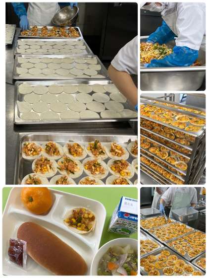 ぎょうざの皮を使って作る「変わりピザ」は毎回、大人気の献立です。昼の放送で、トースターやホットプレート、フライパンを使って、家でも作れることを紹介しました。