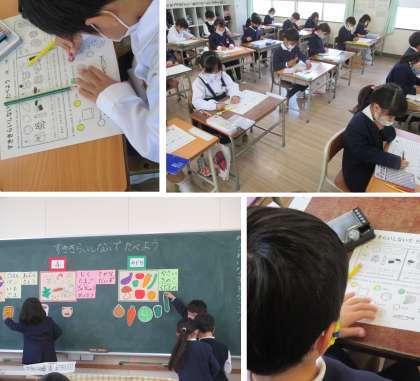 1年生は栄養バランスの基本になる三色栄養を学習しました。