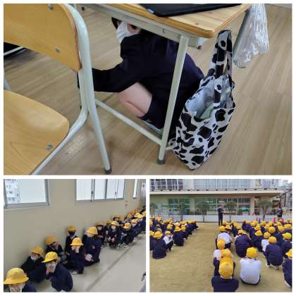 幼稚園のお友達も放送や先生の指示を聞いて、小学校の校舎に避難し校長先生のお話を聞くことができました。