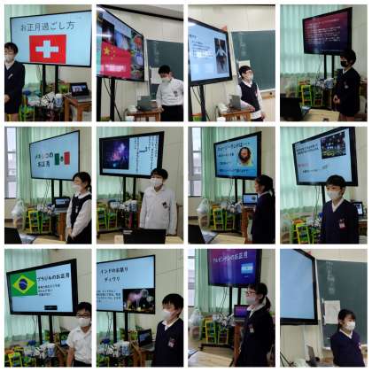 クラス全員で色々な国のお正月の過ごし方を調べ、PPにまとめ発表しました!