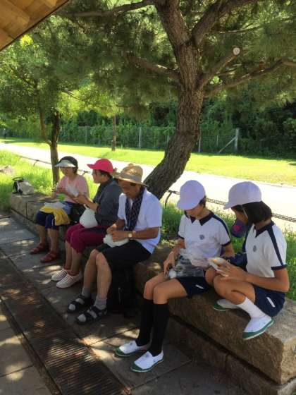 今から少し早い昼食です。ちょうど、関空から飛行機が飛び立つところが見られました。