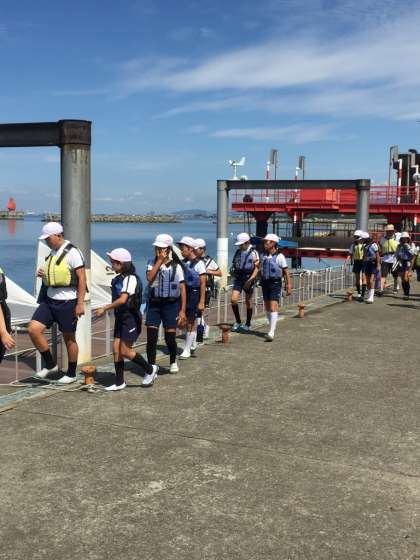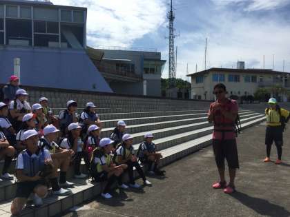 いよいよ海プログラム開始です!みんな、ライフジャケットを着用していざ出発!