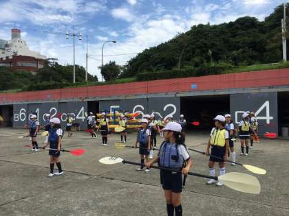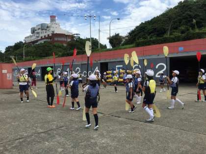 いよいよ、パドルを漕ぐ練習です!肘の角度や、動かし方などのレクチャーしていただき、エアーパドル中です!果たして上手く進むのでしょうか?