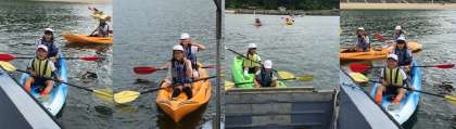 大阪湾にでる競争では、みんな必死!カヌーレースを制したチームはエンジンボートに付いてく
