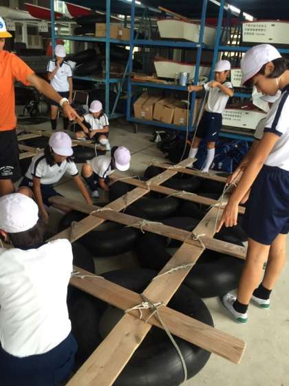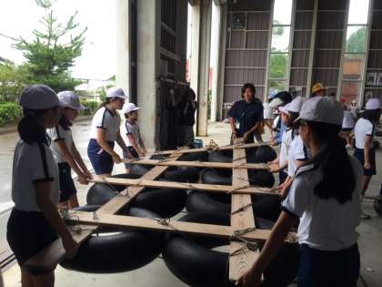 昨日マスターした本結びを使って頑丈ないかだを作ることができました。どの班も最後まで壊れることなく帰ってきました!