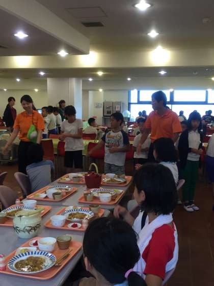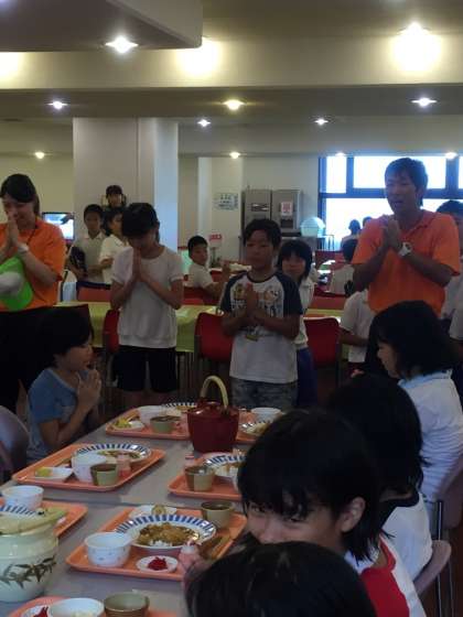 雨に打たれながらも、最後のかたづけまできちんとできました。みんなのがんばりに感謝し、カレーライスをいただきます。
