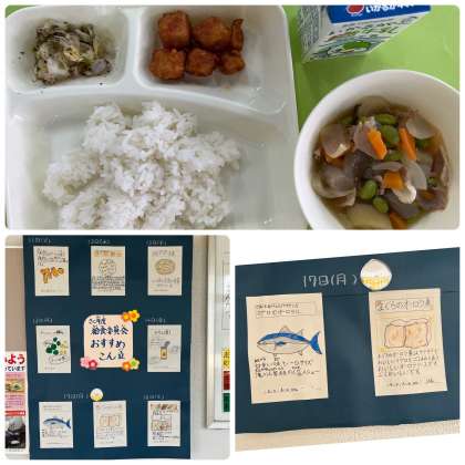 昨年度の給食委員会が作成したおすすめ献立にも登場しています。給食室前に掲示しているので、ご覧ください。