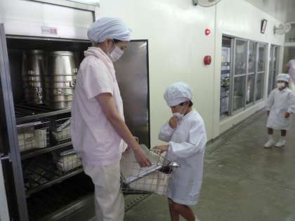 いつも調理員さんや給食委員会のお兄さん、お姉さんが、食器や牛乳などをとりやすいように渡してくれます。いつもいつもありがとう。