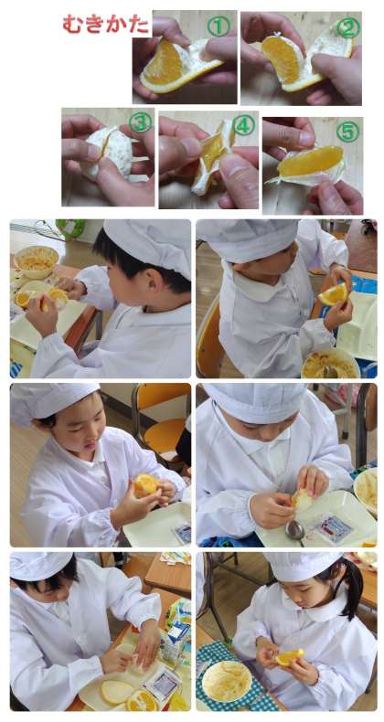 それでも、教室の一口メモを見ながらみんな一生懸命、皮をむいていました。お味の方は…?ぜひ、ご家庭で感想を聞いてみてください。