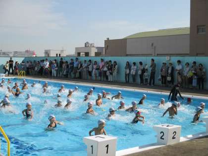 朝からまぶしい太陽が照りつけ、久しぶりのプール日和となりました。今日は、土曜授業として、プール参観がありました。プールサイドは、人、人、人、たくさんの保護者の方の参観がありました。子どもたちは、お家の人や知っている人に見守られる中、少し冷たい水に歓声を上げながら、今年最後のプール水泳を楽しんでいました。保護者の方には、本日子どもたちが頑張っている姿を真剣にかつ温かく見守っていただきありがとうございました。