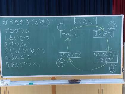 本日ののびのびタイムは様々な運動をみんなでしました。トランポリンや的当て、バランスボールなどみんなで楽しく活動することができました。