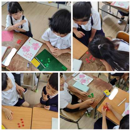 友だちと「〇は2といくつでしょう」と問題を出し合いました。