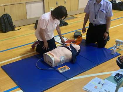 先日、教職員対象の救急救命講習が行われました。AEDの使い方やいざというときの確認をしました。知っていることでも定期的に確認し、情報を共有していくことの大切さを知ることができました。