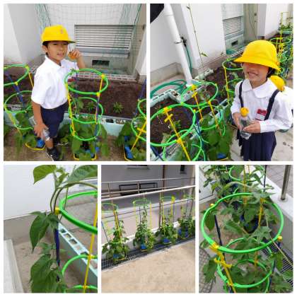 最初は手のひらほどの長さだったつるも、こどもたちの身長を超える長さに成長しています。