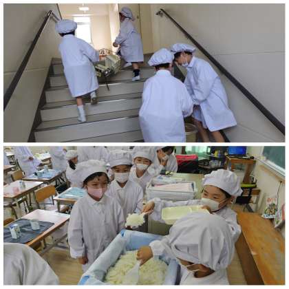 入学当初は持つことすら難しかった給食の食器や食缶。