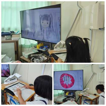 最後は書画カメラを使って、描いた絵をクラスのみんなに見せながら大きな声で発表することができました。
