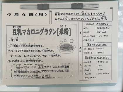 【今日の給食】 豆乳マカロニグラタン[米粉]