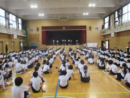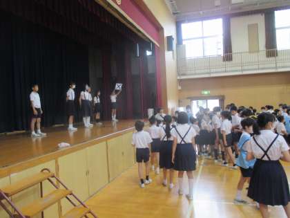 2学期最初の児童集会が行われました。先生に関する3つのヒントを〇×で答えるゲームでした。班のみんなで話し合い、久しぶりの集会は大盛り上がりでした。