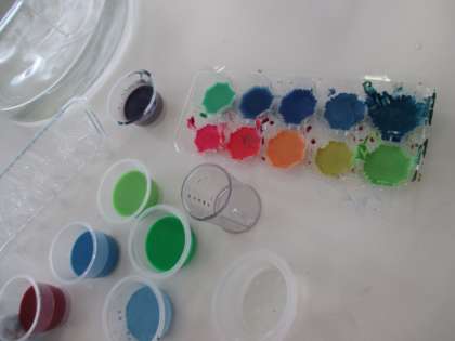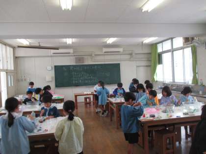 2年生は図工で、絵の具を使った色水づくりをしました。