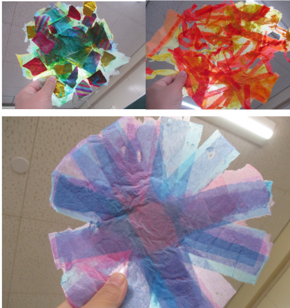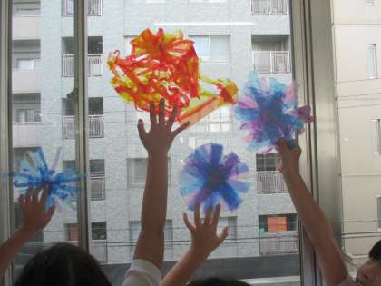 みんなの作品を集めて光に透かして見ると、とてもすてきです!
