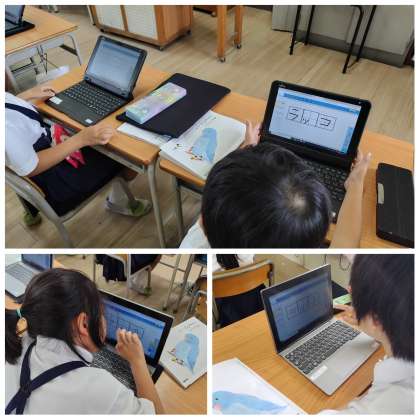 ひらがな・カタカナを横書きでかくと、小さい「や・ゆ・よ・つ」は四角のマスのどの部屋に入るのかを学習しました。