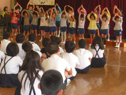 ばら組さんと滝川小学校3,4年生のお兄さん、お姉さんとが歌う会をしました。