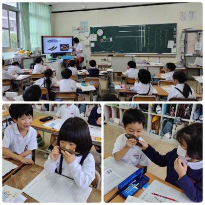 のらねこがかつおぶしをすすめてくれる場面を学習しました。最後にかつおぶしが登場!みんなで順番に触ってにおいをかいでみました。おいしそうなにおいがしていましたね。