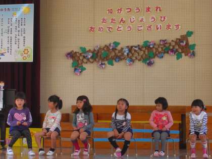 運動会を終え、一回りたくましくなった子どもたちの誕生会でした。