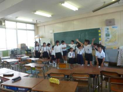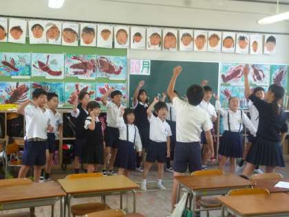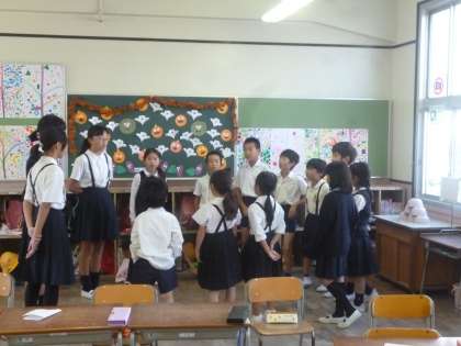 今日は(16日)来週行われるふれあいオリエンテーリングに向けてのエール練習がふれあい班で集まって行われました。本校で行われる活動の多くは、ふれあい班で行われます。今回の活動も、6年生が中心となって、曲の歌詞を決め、振付を考え、班のみんなにわかりやすく、そして楽しく伝え、練習をしていました。オリエンテーリングでは、グループで協力して、問題を解きながら、服部緑地をまわり、自分たちが考えたエールを発表します。こんな6年生のがんばりを、みんな見ていて、来年度もそんな6年生に追いつけるようにがんばります。これが滝川小学校のよい伝統になっています。来週のオリエンテーリングが楽しみです。