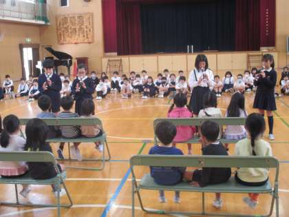 3,4時間目にばら組さんと幼小交流「歌う会」をしました。コロナ禍でできていなかったのでひさしぶりに実施することができました。4年生はリコーダーを含めて3曲、幼稚園も2曲歌ってくれました。