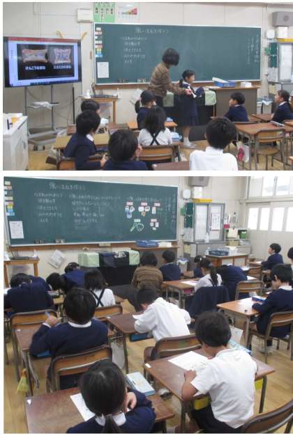 大人と子どもの上腕骨の模型を比べて、その大きさの違いにびっくりしていました。