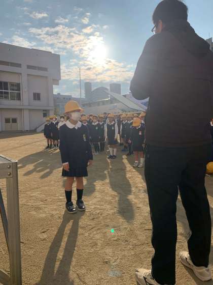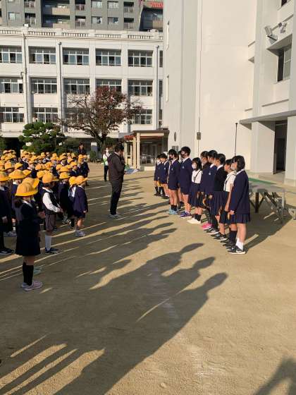 昨日の全校朝会で夏休みの図工作品で阪神電車コンクールの2年生の女の子と先日北区ドッジボール大会で優勝した6年生のチームがみんなの前で表彰されました。