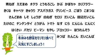 一口メモを参考に、冬休みも野菜をしっかり食べて、元気にすごしてください!