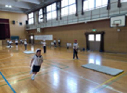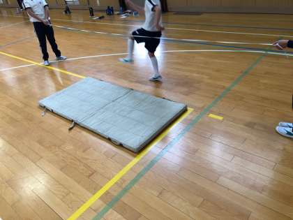 はじめ、子どもたちはゴムに向かって真っすぐに走りこんでいました。しかし、練習を重ねていくと、ゴムに対して斜めに走りこんだり、片足ずつ足を伸ばして跳んだりと、どんどん飛び方が変わってきています。