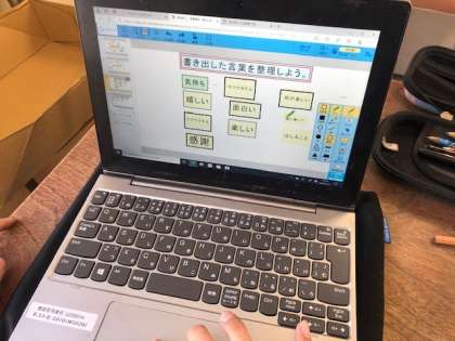 そのときの様子や自分の気持ちを表す言葉を、発表ノートにどんどん書き出し、様々な言葉や表現が増やしていきました。今後は、この言葉を使って、自分だけの詩を作っていきます。