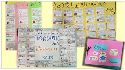各クラスで感謝のお手紙を書き、給食調理員さんに渡しました。